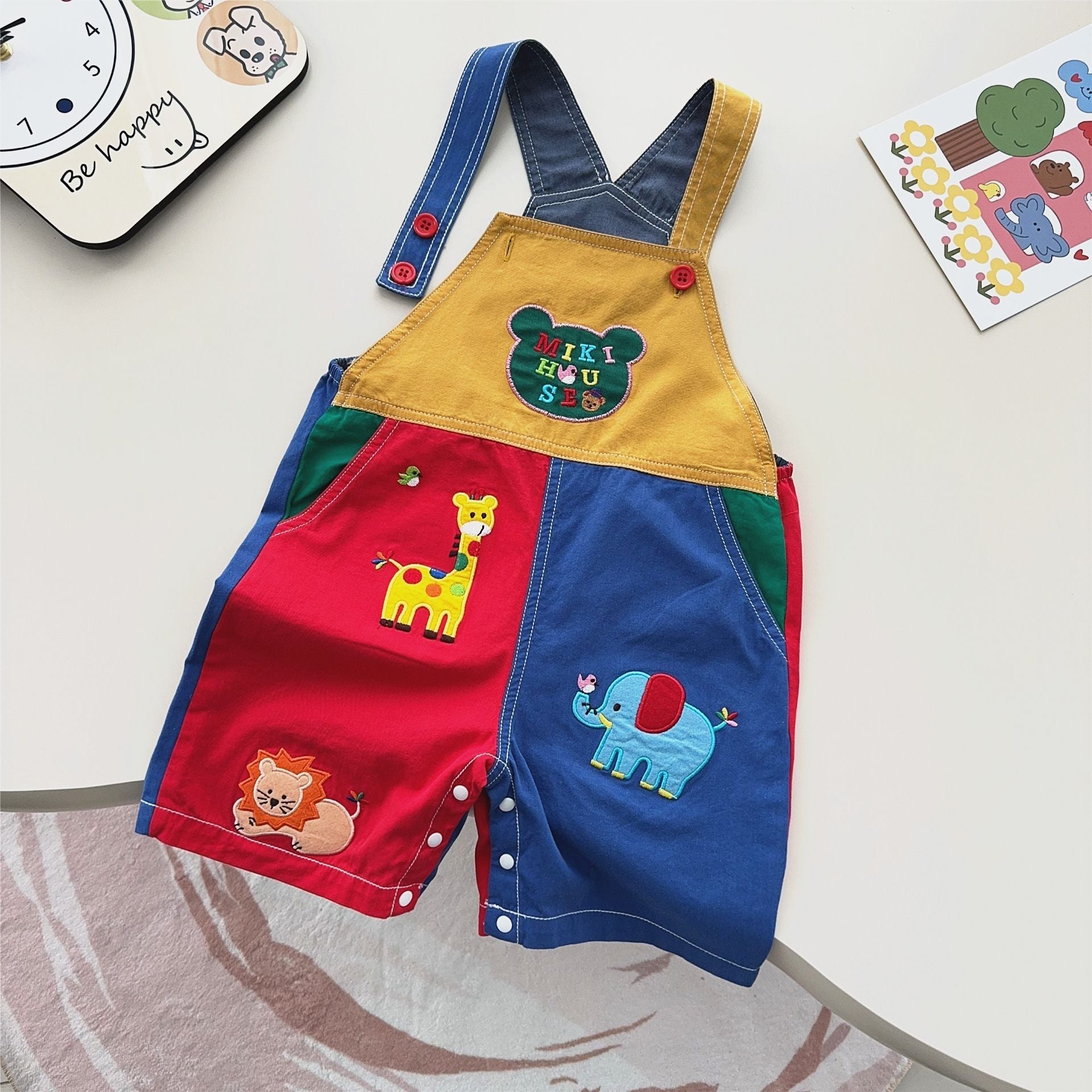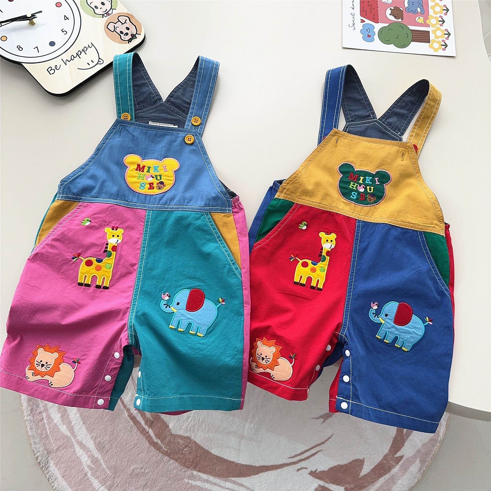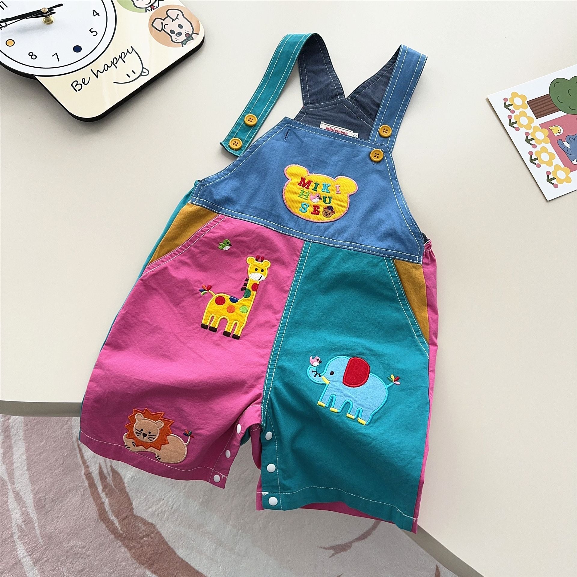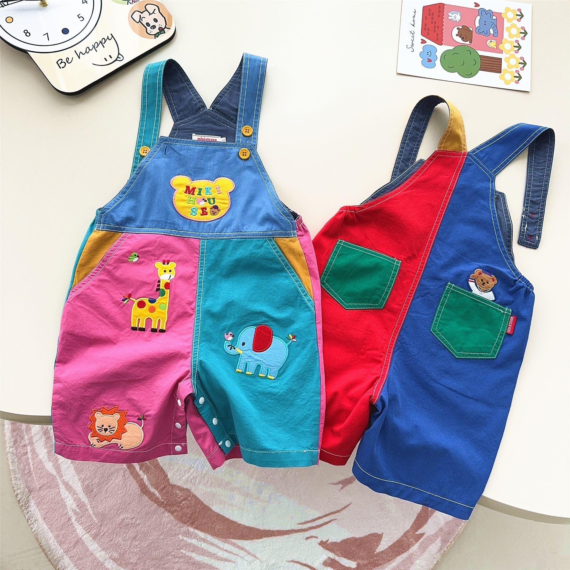 Boy Cartoon Bear Letter Splicing Suspender Shorts