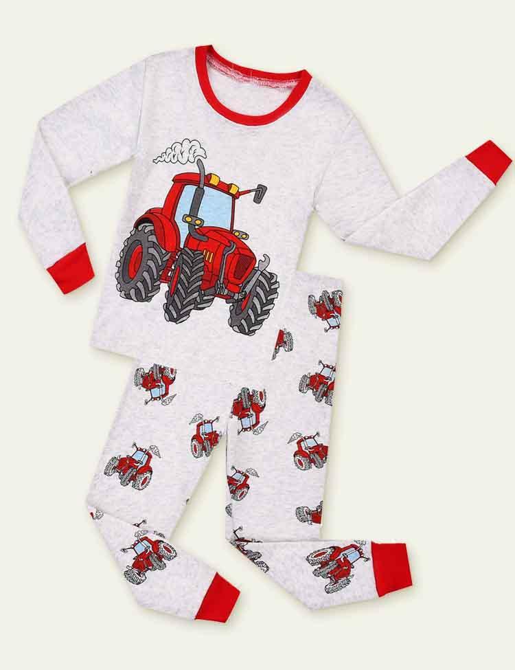 Cartoon Tractor Printed Pajamas