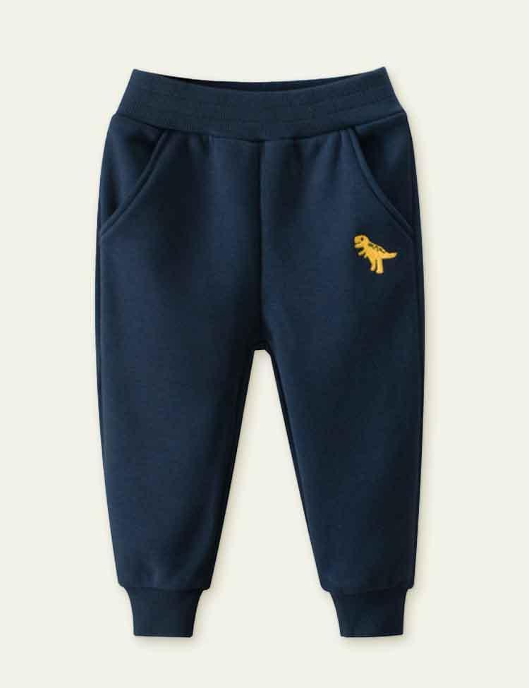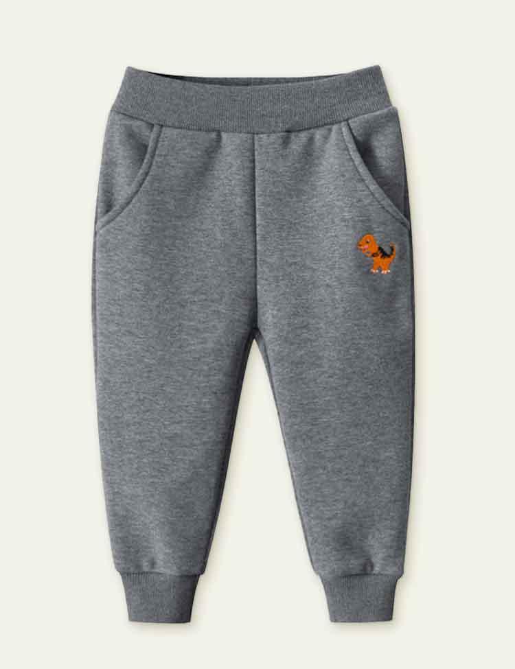 Dinosaur Embroidery Velvet Sweatpants