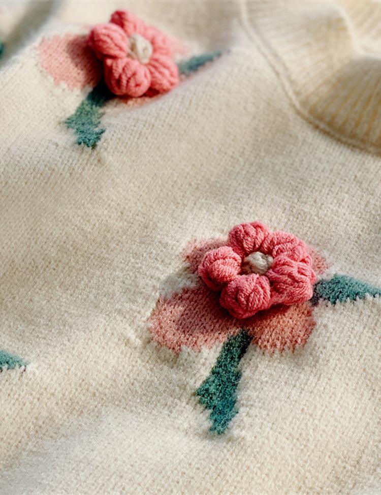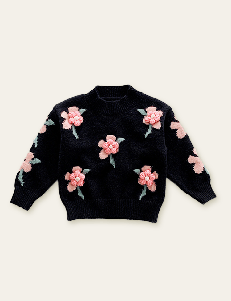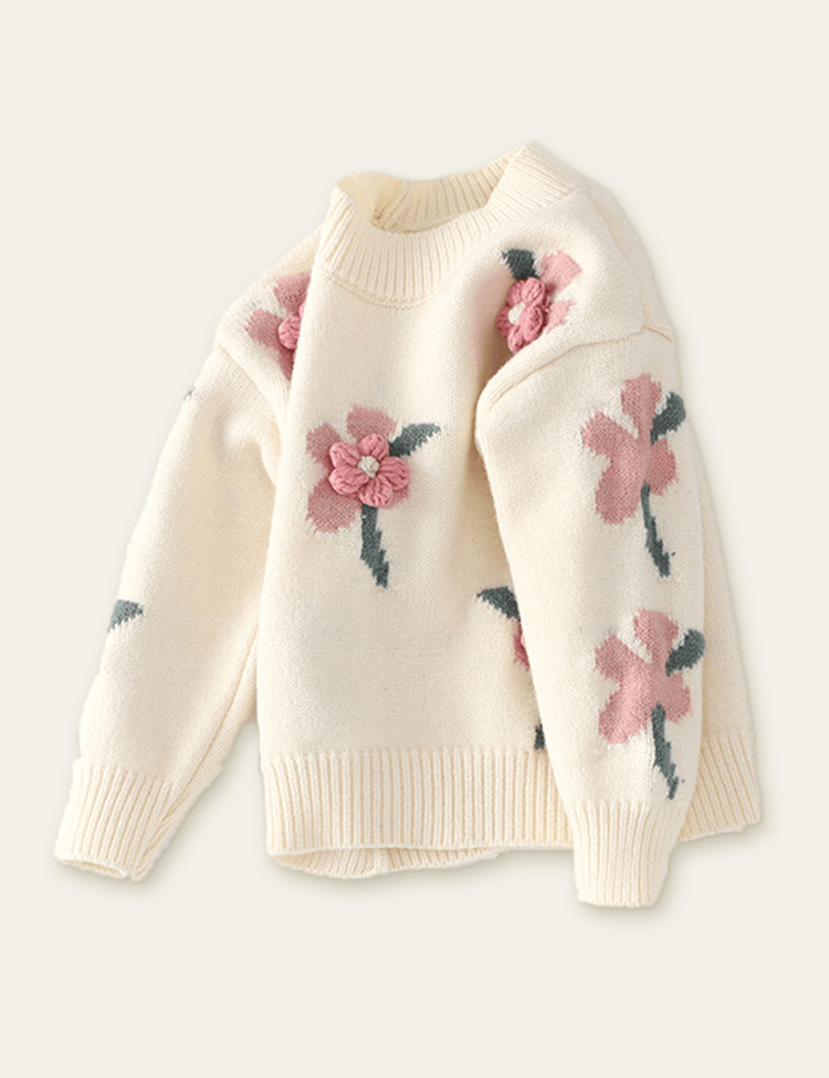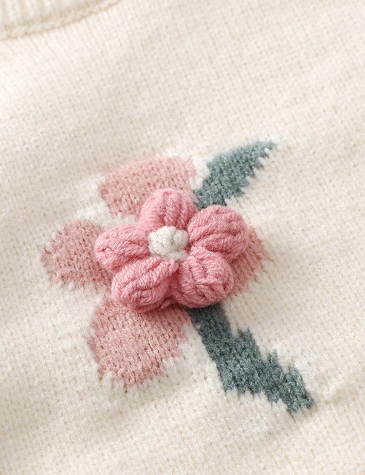 Toddler 3D Flower Crew Neck Pull Over Sweater