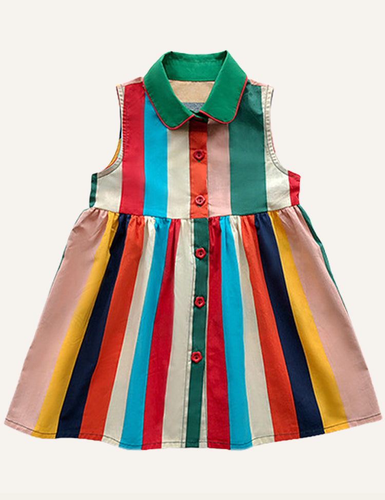 MOM & Me -Sleeveless Colorful Striped Vest Dress
