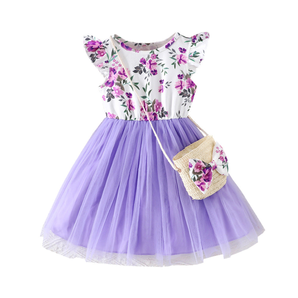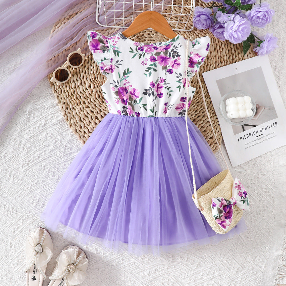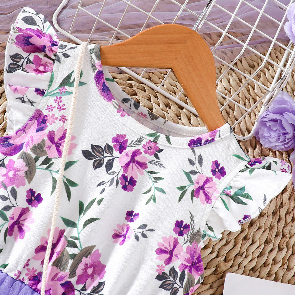 Floral Print Stitching Mesh Dress