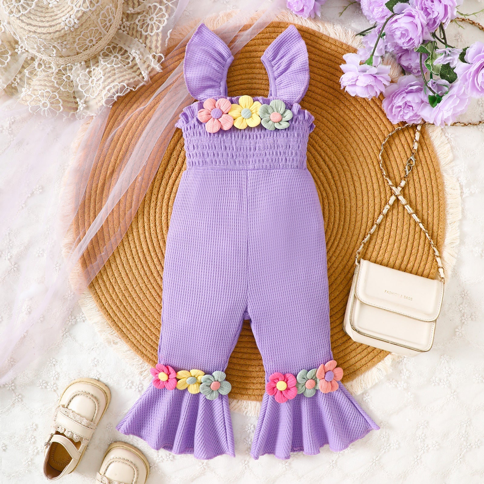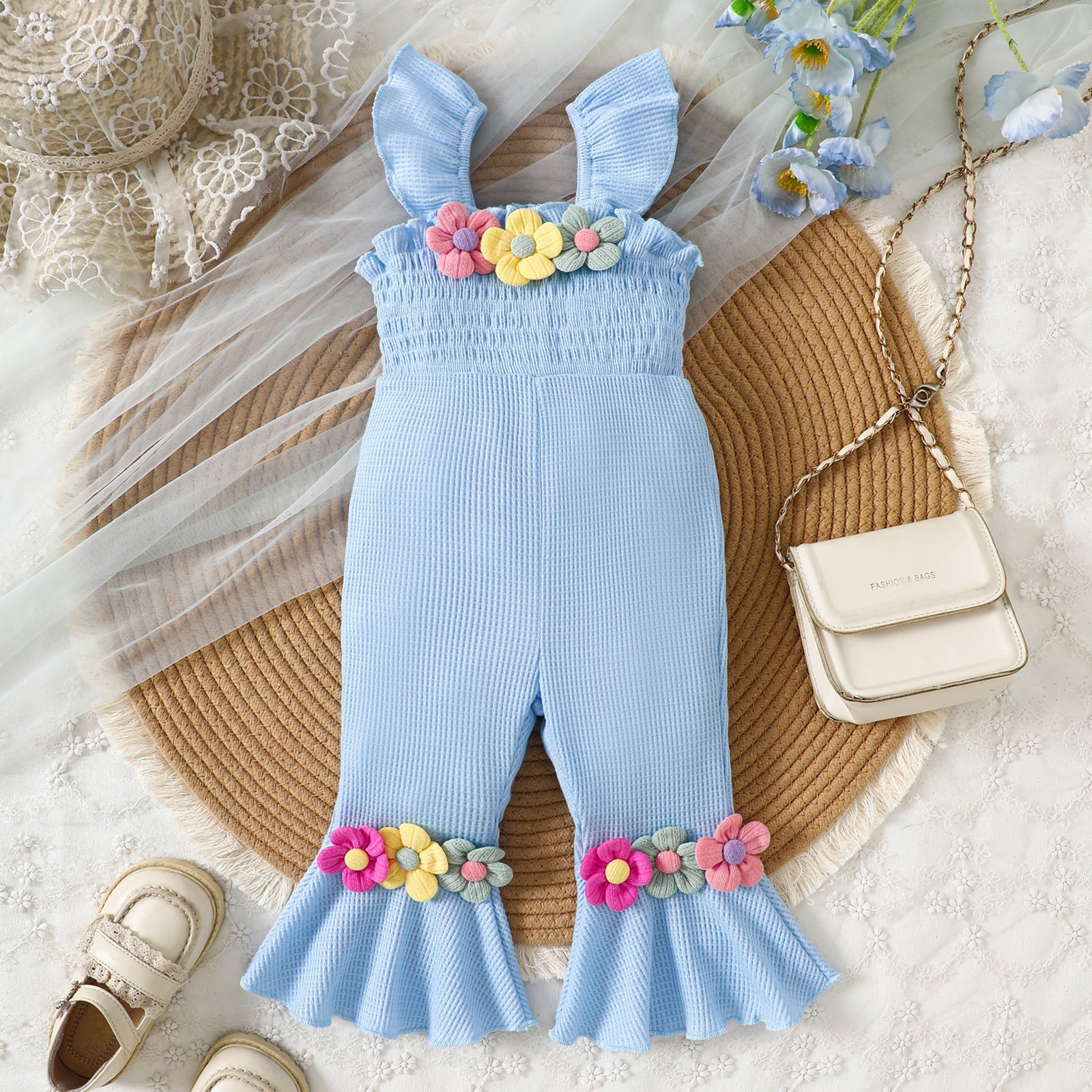 Knitted Three-Dimensional Flower Bell-Bottom Pants