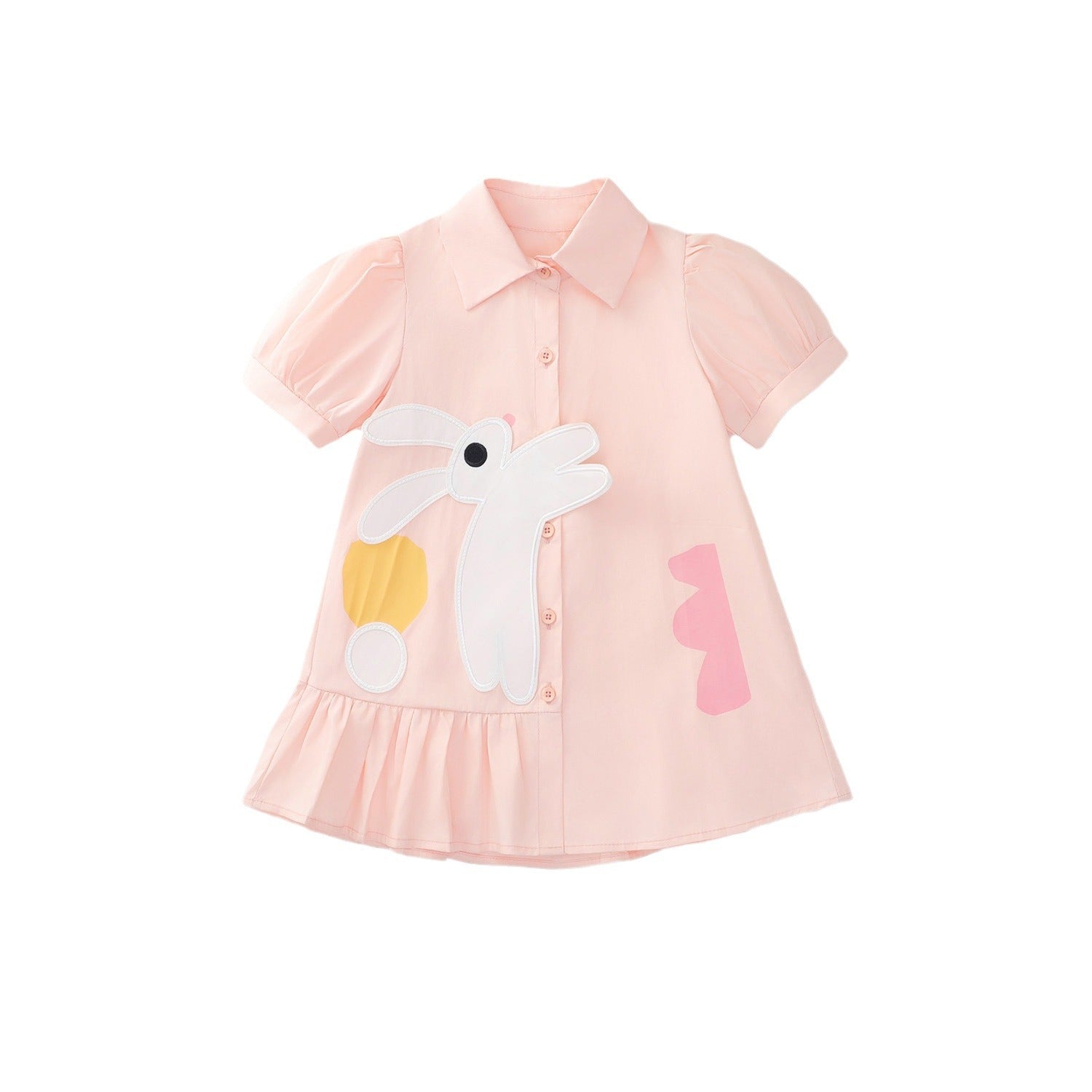 Pink Bunny Short-Sleeved Shirt Dress