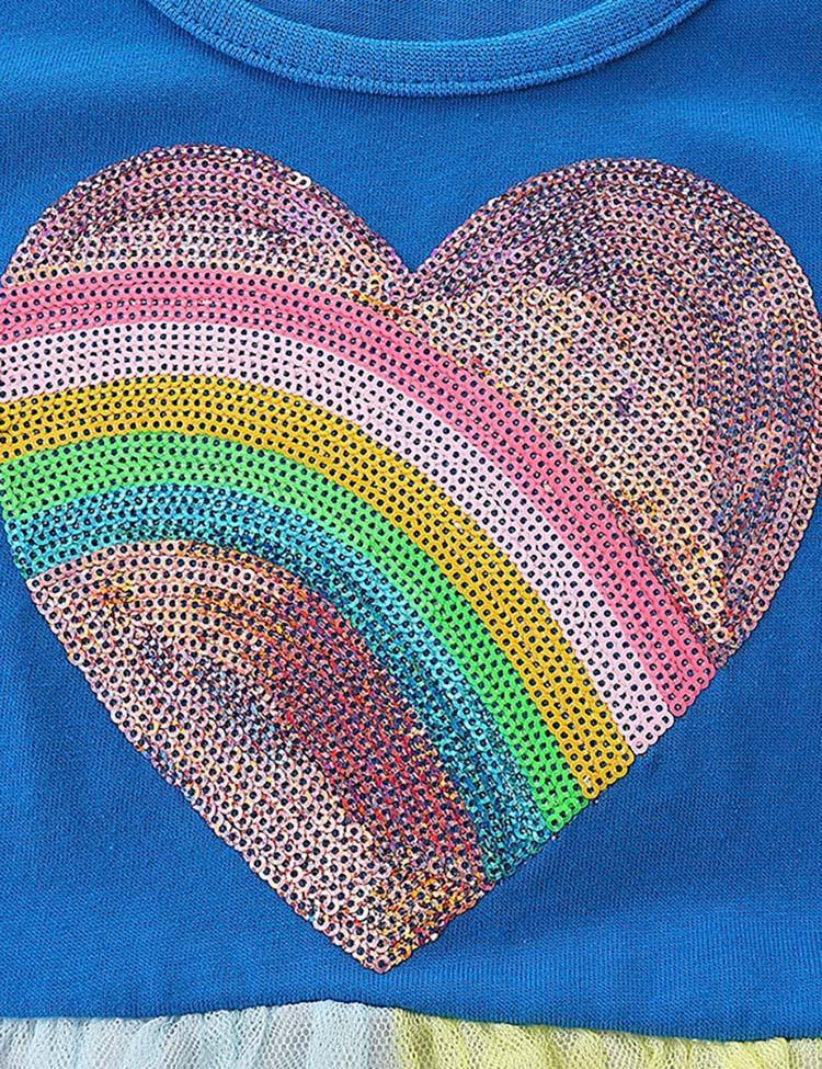 Toddler Girl Rainbow Love Sequined Long Sleeve Splicing Color Mesh Dress