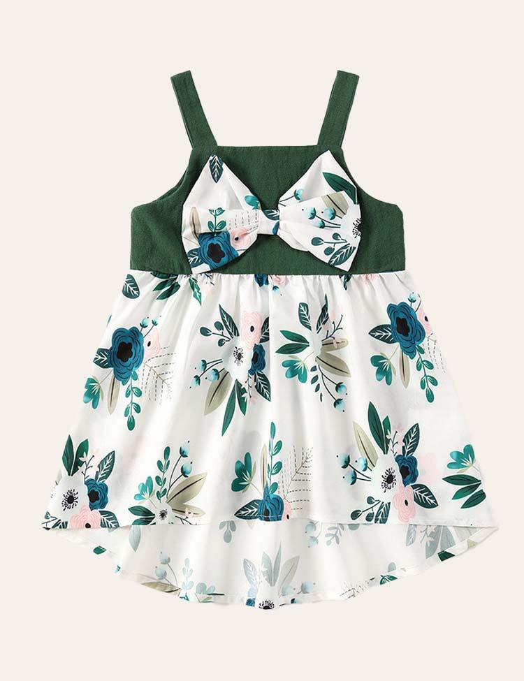 Family Matching Button Design Flutter Sleeves Bow Belted Splicing Floral Print Dress