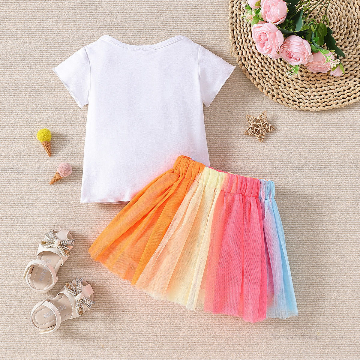Letter Short Sleeve Top Skirt Suit
