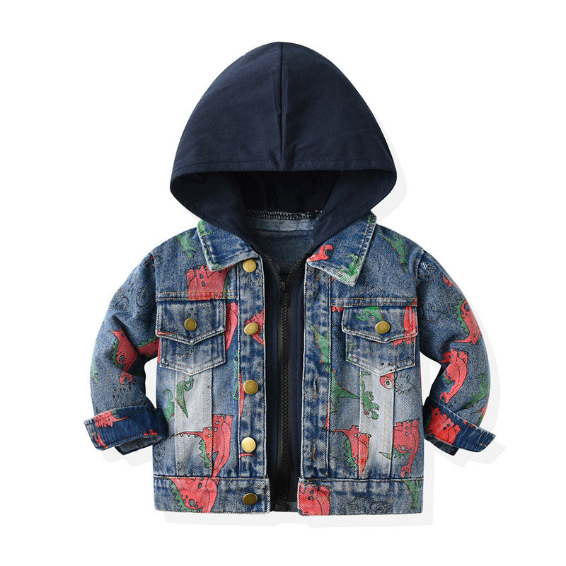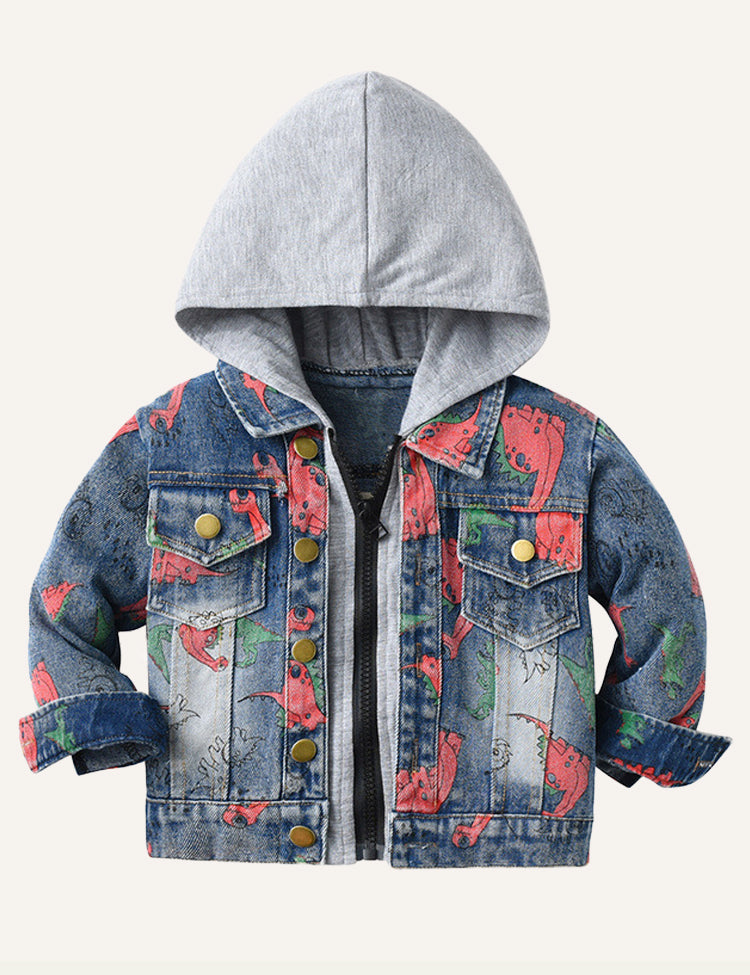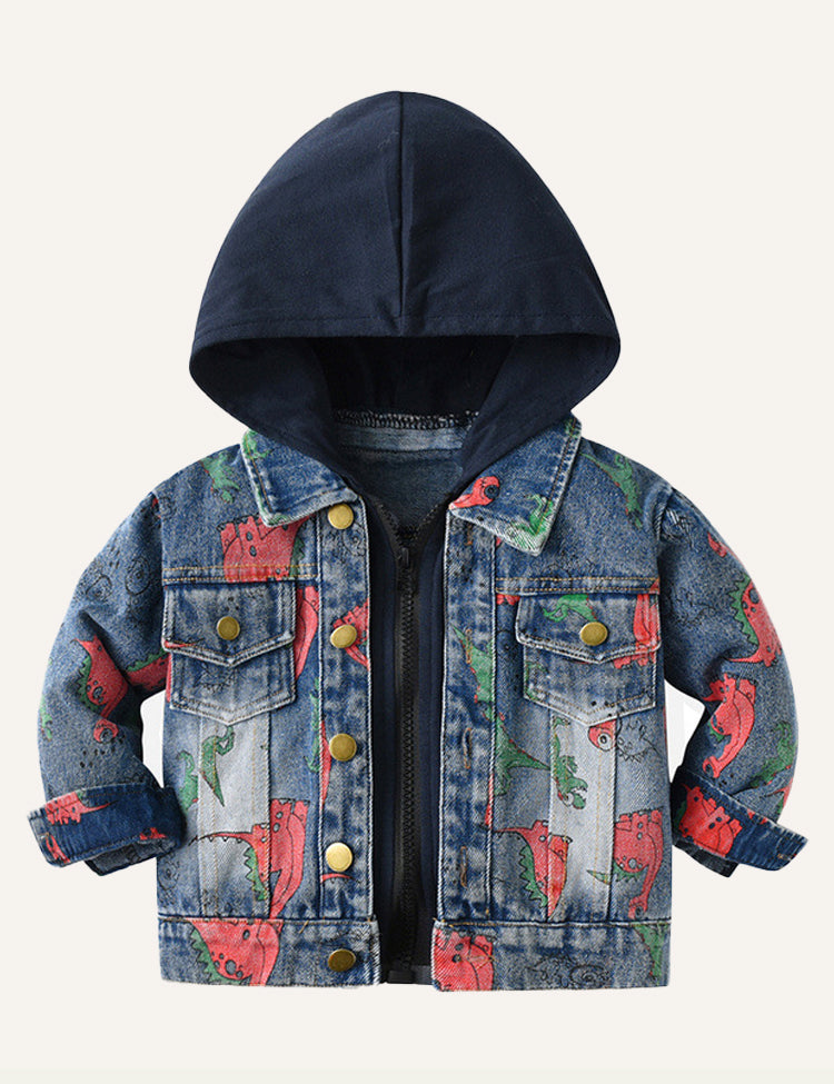 Children's Dinosaur Print Denim Hooded Jacket