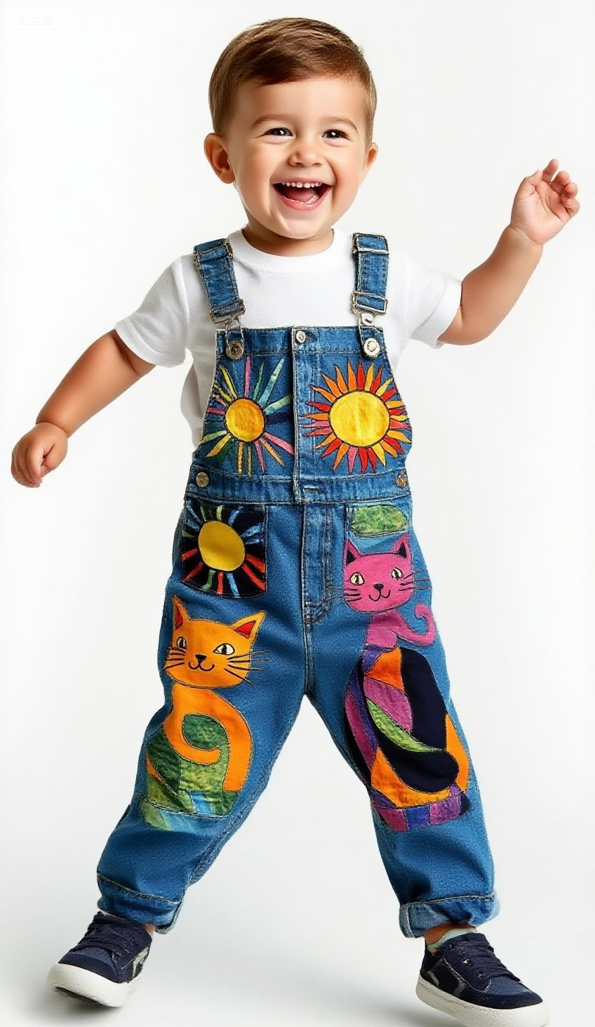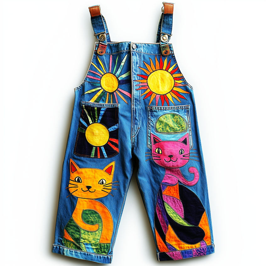 Lucky Sale Unisex-Mom & Me Open Sun Kitten Colored Unisex Overalls