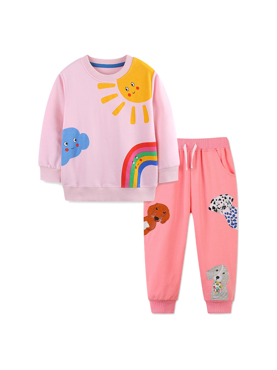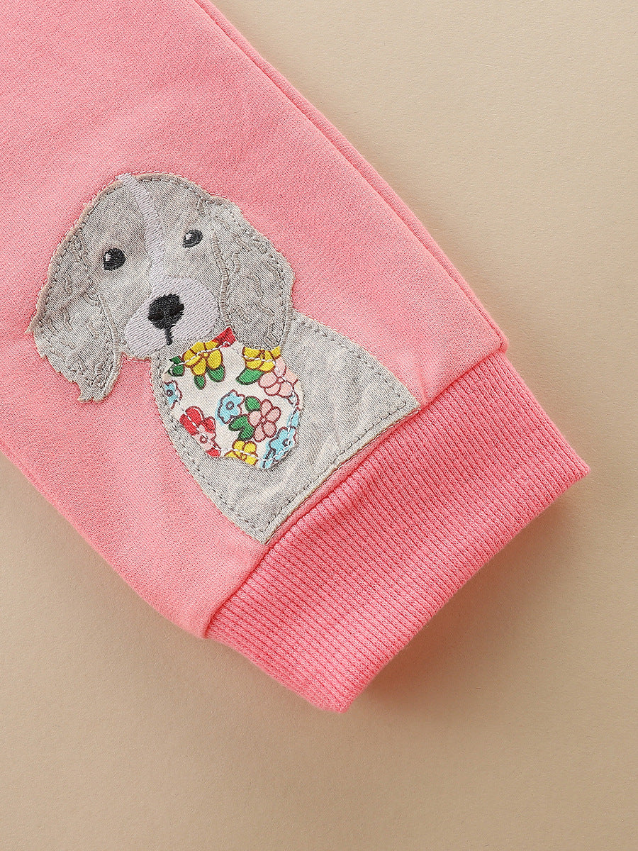 Puppy Embroidered Sweatshirt Suit