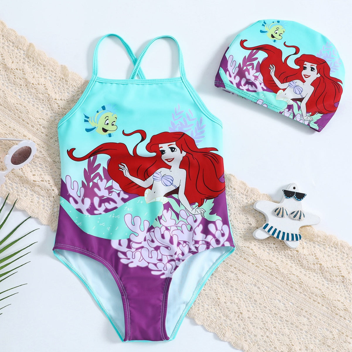 Mermaid Printed Swimsuit + Mermaid Swimming Cap