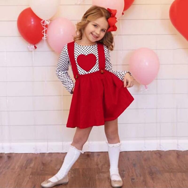 Girl's Valentine's Day Long-Sleeved Love T-shirt + Suspender Skirt