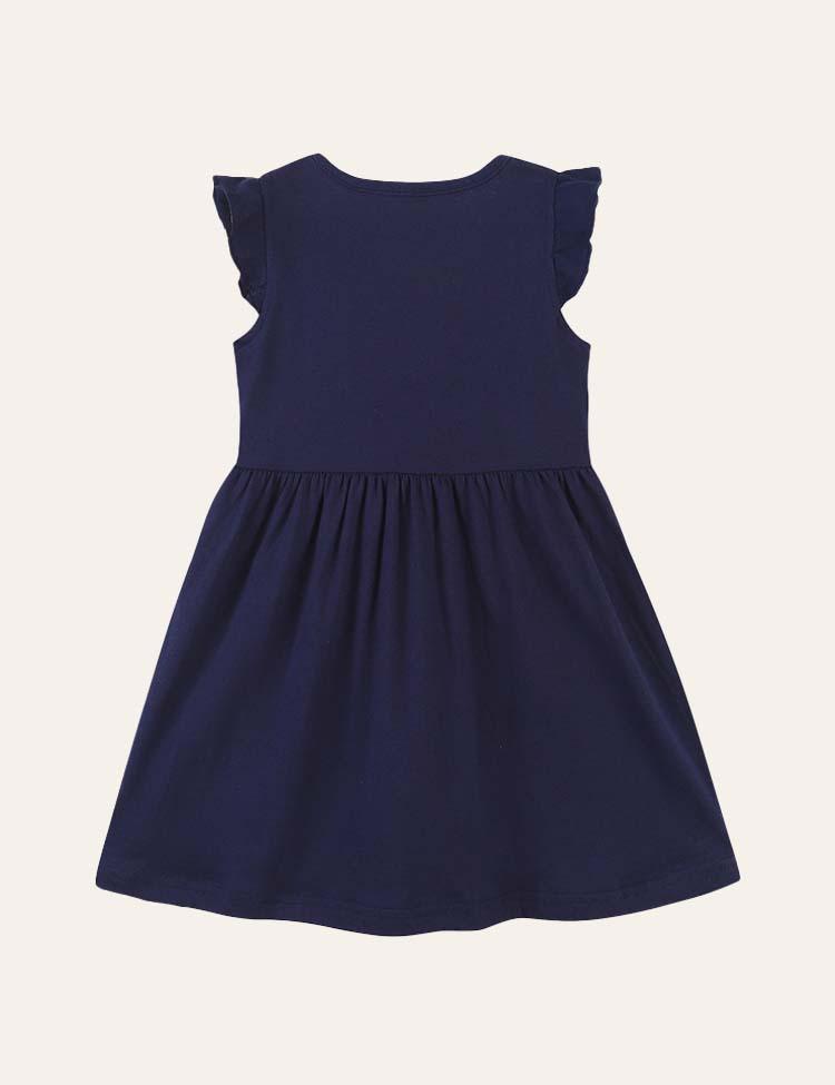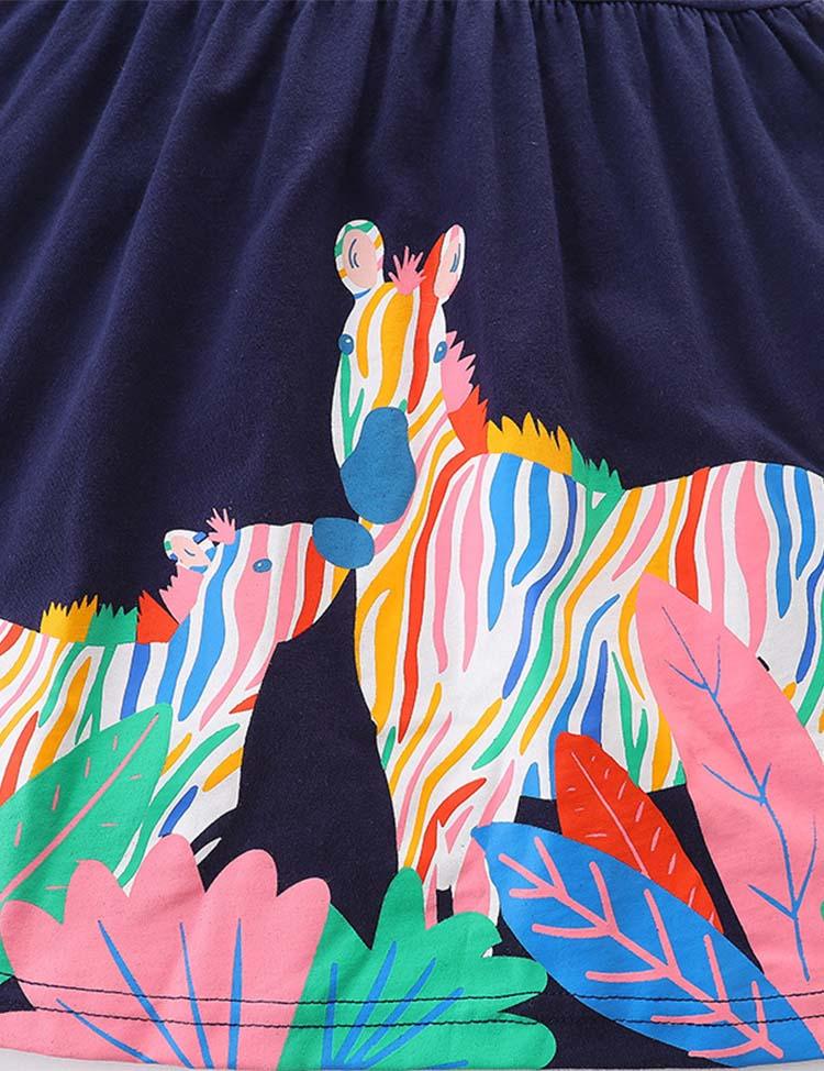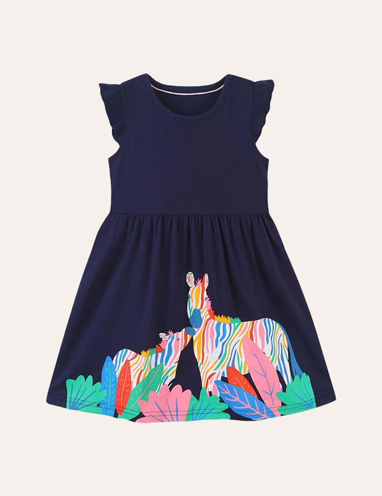 Toddler Girl Rainbow Zebra Applique Flutter-sleeve Dress